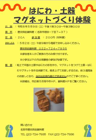 はにわ・土器マグネットづくり体験のチラシ詳細はこちら
