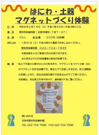 はにわ・土器マグネットづくり体験のチラシ詳細はこちら